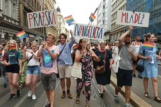 Osobně jsme také přispěli k uskutečnění meditace na Střeleckém ostrově a páteční panelové diskuze na téma Coming out v křesťanské rodině. Vrcholem festivalu byl velmi pohodový a radostný průvod Prahou s následným odpoledním festivalovým programem na Letné, kterého se účastnilo asi 30 tisíc lidí. Součástí programu byly též dvě nedělní bohoslužby v evangelickém kostele Martina ve zdi. Zveme vás k prohlídce letošního Prague Pride našima očima.